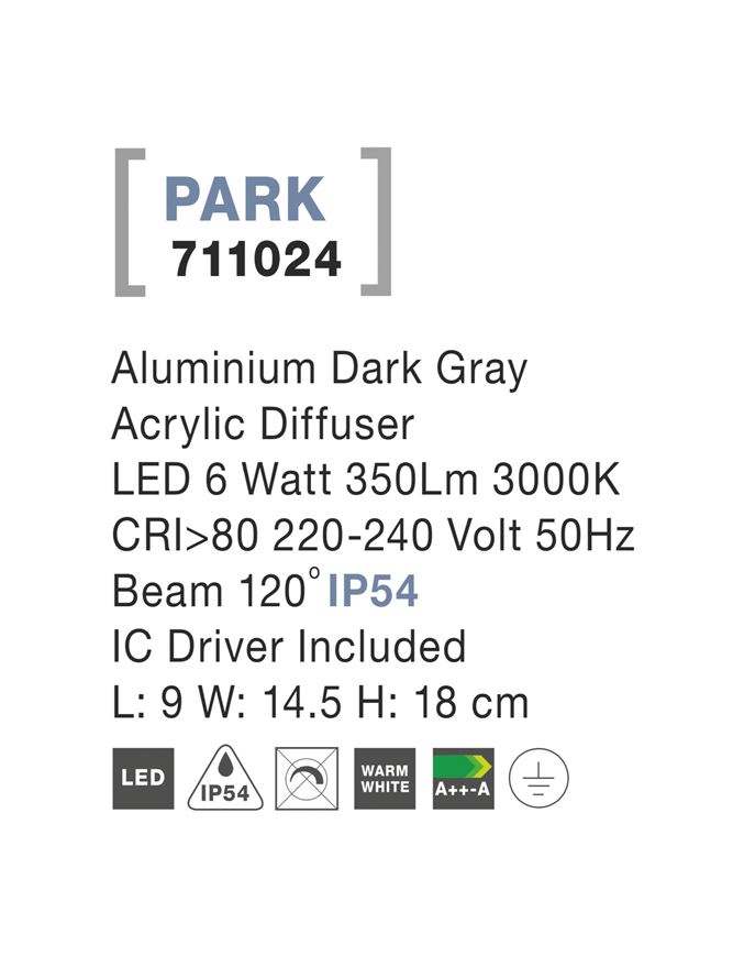 Срок на доставка: ПО ЗАПИТВАНЕ Продуктова информация Материал: Aluminium Dark Gray Acrylic Diffuser, IC Driver Included Тип крушка: LED 6 Watt 350Lm 3000K220-240 Volt 50Hz -IP54- Код: 711024 Тип продукт: OUTDOOR – FLOOR AND WALL Размери: L:89 W:145 H:180 mm