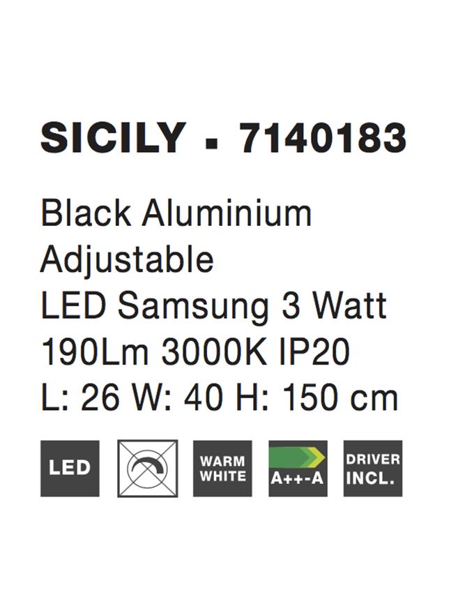 Срок на доставка: ПО ЗАПИТВАНЕ Продуктова информация Материал: Black Aluminium Adjustable Тип крушка: LED Samsung 3 Watt 190Lm 3000K IP20 Код: 7140183 Тип продукт: WALL LUMINAIRES Размери: L:26 W:40 H:150 cm