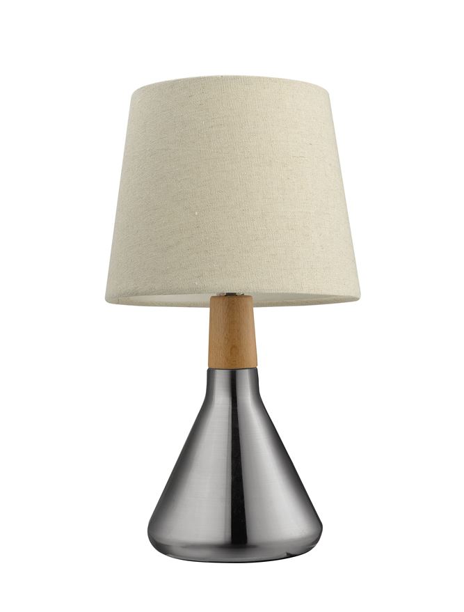 Chrome Metal & Natural Wood Sand White Fabric Shade LED E14 1x5W Bulb Excluded D: 20 H: 33.5 cm