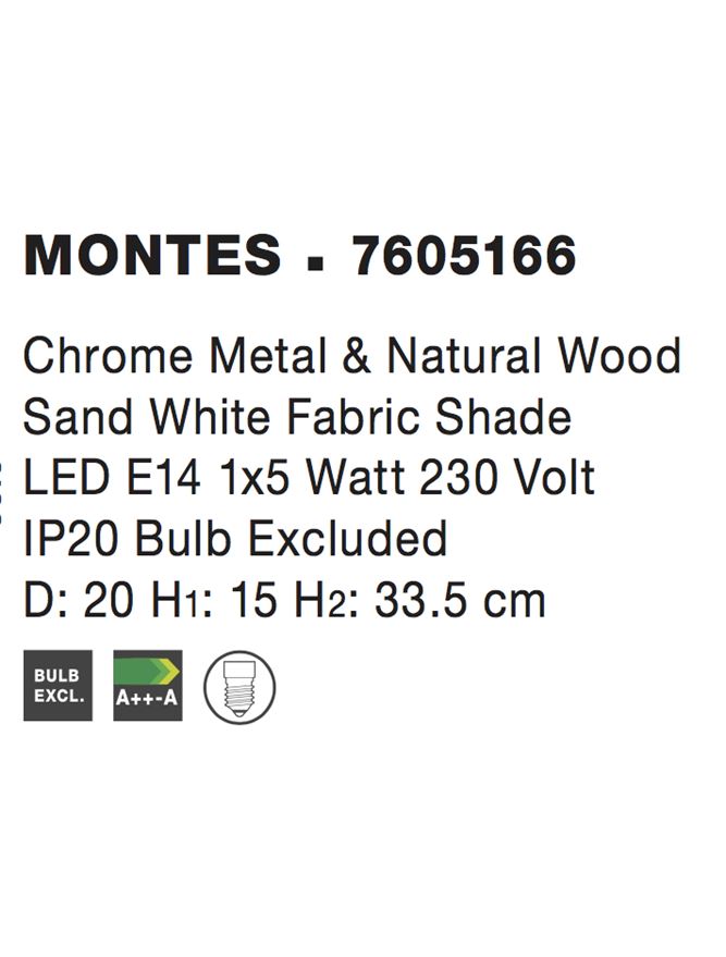 Срок на доставка: ПО ЗАПИТВАНЕ Продуктова информация Материал: Chrome Metal & Natural Wood Sand White Fabric Shade Тип крушка: LED E14 1x5W IP20 Bulb Excluded Код: 7605166 Тип продукт: WOOD Размери: D: 20 H1: 15 H2: 33.5 cm