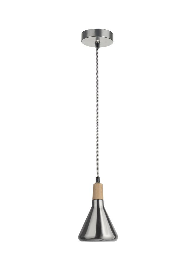 Nickel Metal Natural Wood LED E14 1×5 W Bulb Excluded D: 12.5 H:120cm