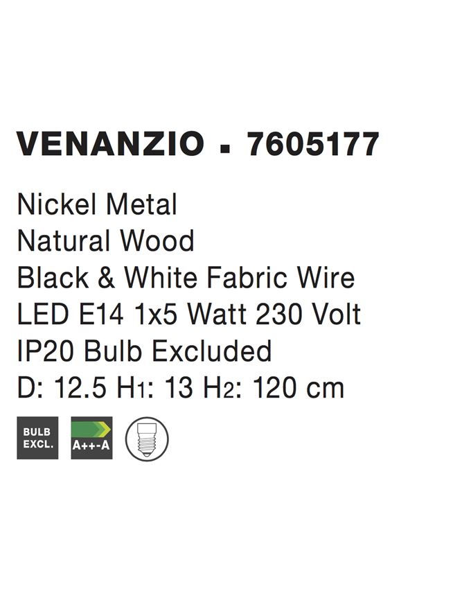Срок на доставка: ПО ЗАПИТВАНЕ Продуктова информация Материал: Nickel Metal Natural Wood Black & White Fabric Wire Тип крушка: LED E27 1x12W IP20 Bulb Excluded Код: 7605177 Тип продукт: WOOD Размери: D: 12.5 H1: 13 H2: 120 cm
