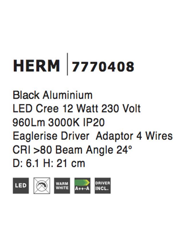 Срок на доставка: ПО ЗАПИТВАНЕ Продуктова информация Материал: Black Aluminium Adjustable Тип крушка: 4 Wires , LED Cree 12 Watt Driver Eaglerise 960Lm 3000K Код: 7770408 Тип продукт: TRACK LIGHTING SYSTEMS Размери: D: 6.1 H: 21 cm