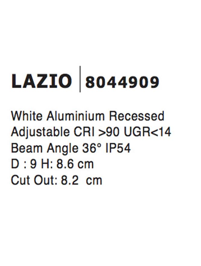 Срок на доставка: ПО ЗАПИТВАНЕ Продуктова информация Материал: White Aluminium Adjustable Тип крушка: Recessed IP54 Код: 8044909 Тип продукт: DOWNLIGHT RECESSED SPOTS Размери: D:9 H:8.6 cm Cutout: 8.2 cm