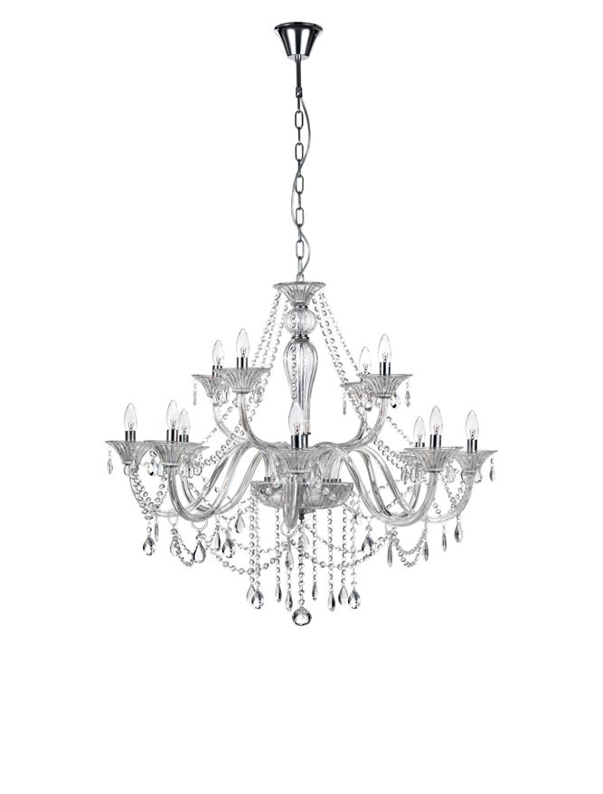 Chrome Aluminium Glass & K9 Crystal LED E14 12×5 W IP20 Bulb Excluded D: 100 H1: 84 H2: 120cm