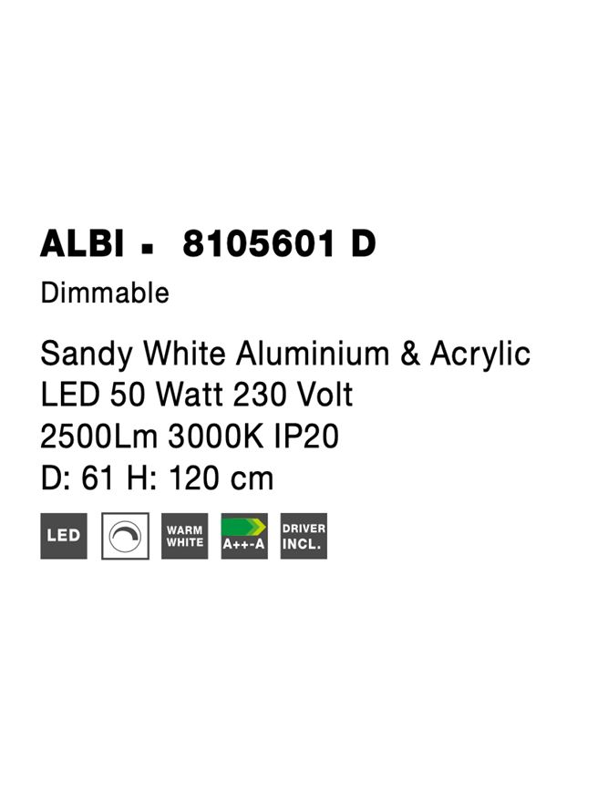 Sandy White Aluminium & Acrylic LED 50 Watt 230 Volt 2500Lm 3000K IP20 D: 61 H: 120 cm