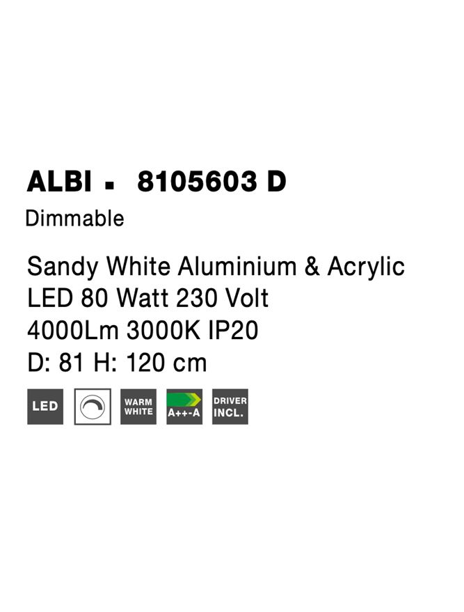 Sandy White Aluminium & Acrylic LED 80 Watt 230 Volt 4000Lm 3000K IP20 D: 81 H: 120 cm
