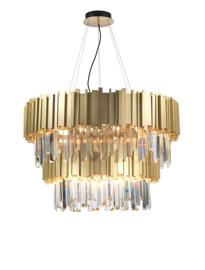 Golden Brass Aluminium & Crystal LED G9 20×3.5W IP20 Bulb Excluded D: 85 H1: 55.5 H2: 180cm