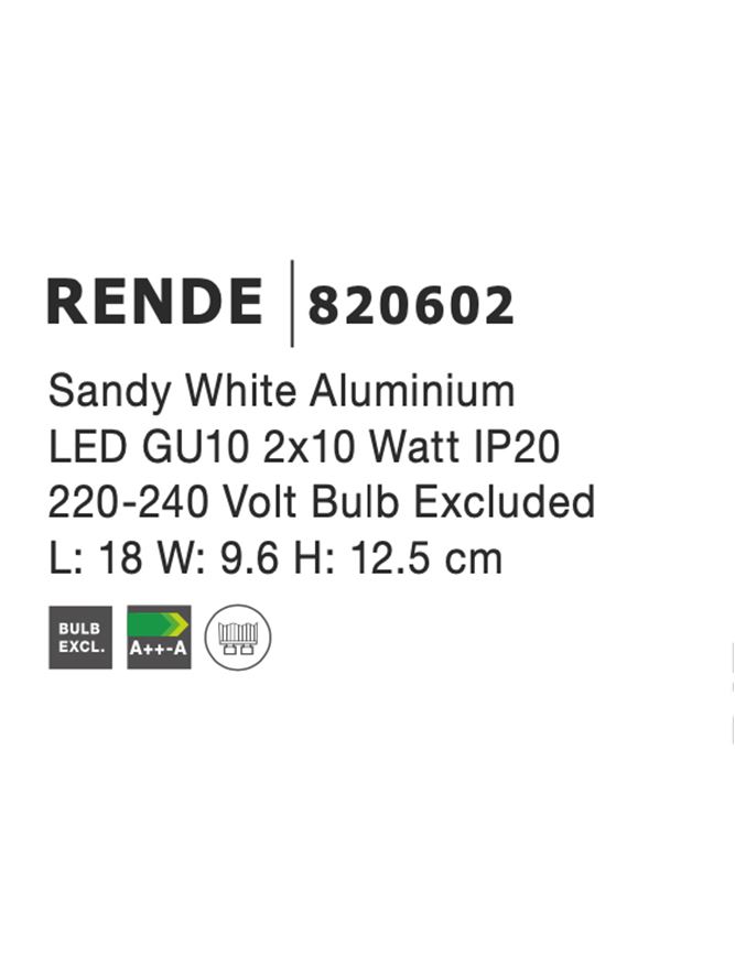 Sandy White Aluminium LED GU10 2×10 Watt IP20 220-240 Volt Bulb Excluded L: 18 W: 9.6 H: 12.5 cm
