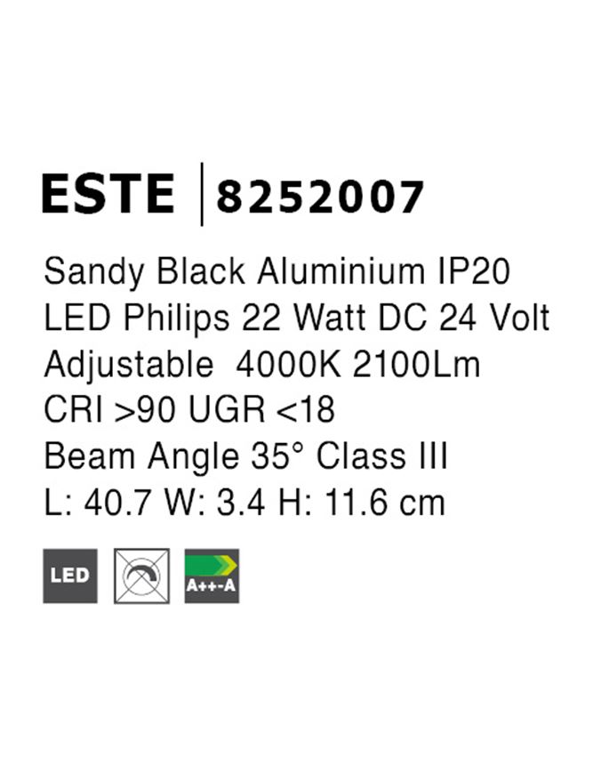 Sandy Black Aluminium 15W DC24V Philips L:26.9 W:3.5 H:5.1 1080Lm 4000K IP20