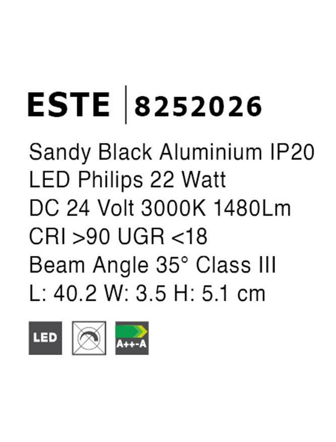 Sandy Black Aluminium 22W DC24V Philips L:40.7 W:3.4 H:11.6 1880Lm 3000K IP20