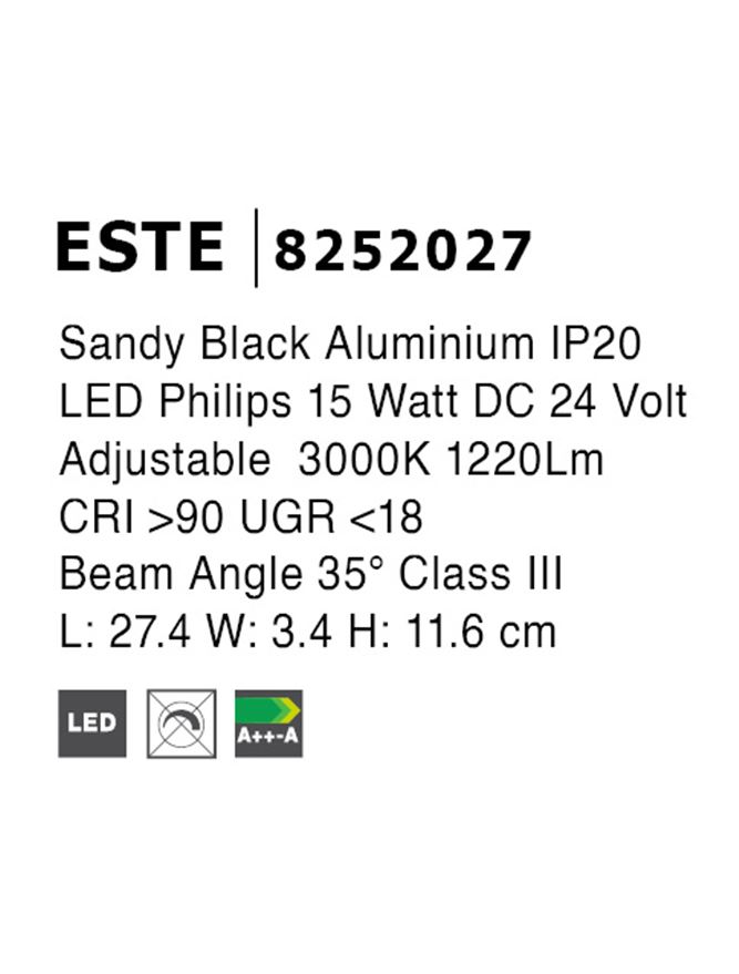 Sandy Black Aluminium 15W DC24V Philips L:27.4 W:3.4 H:11.6 1220Lm 3000K IP20