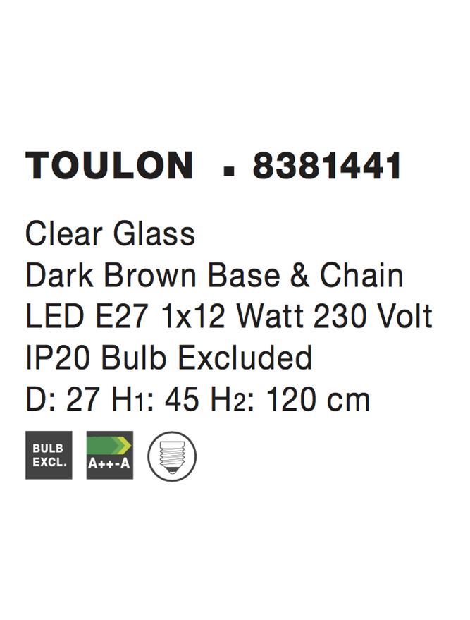 Clear Glass Dark Brown Base & Chain LED E27 1x12W IP20 Bulb Excluded D: 27 H1: 45 H2: 120 cm