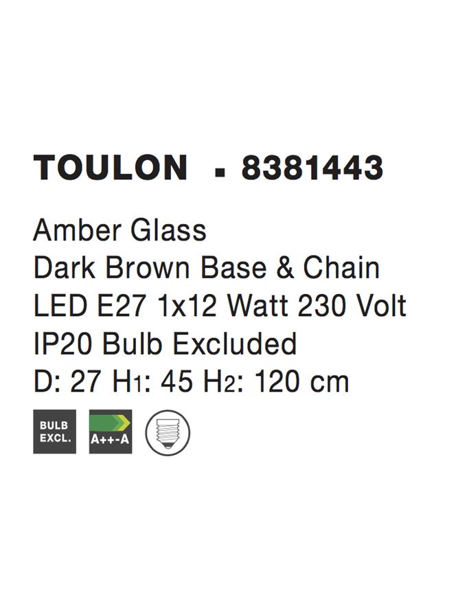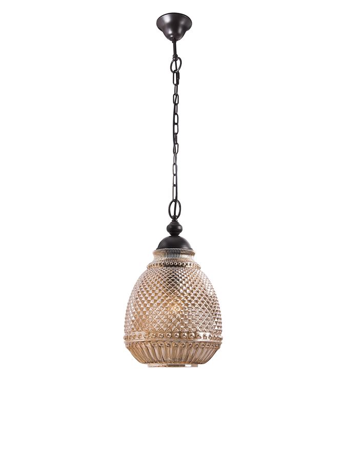 Amber Glass Dark Brown Base & Chain LED E27 1x12W IP20 Bulb Excluded D: 27 H1: 45 H2: 120 cm