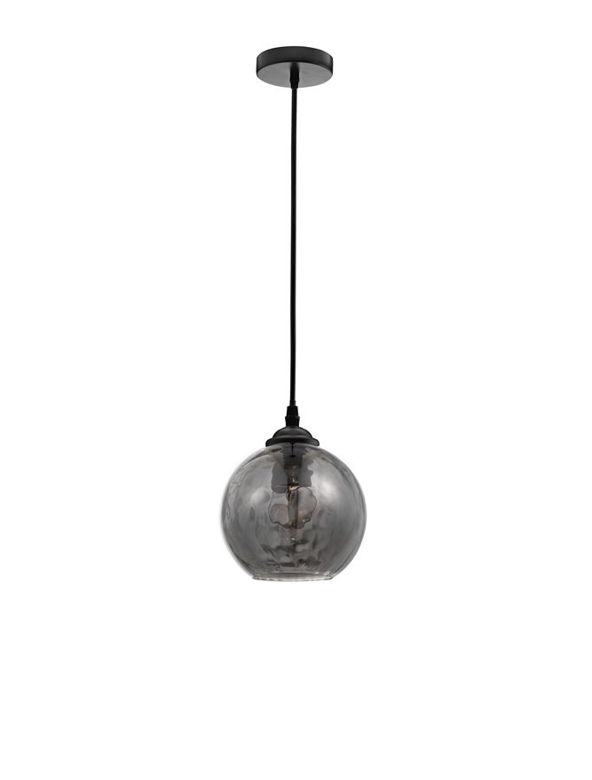 Smoke Glass Black Metal LED E27 1×12 Watt 230 Volt IP20 Bulb Excluded D: 14 H1: 12 H2: 125 cm