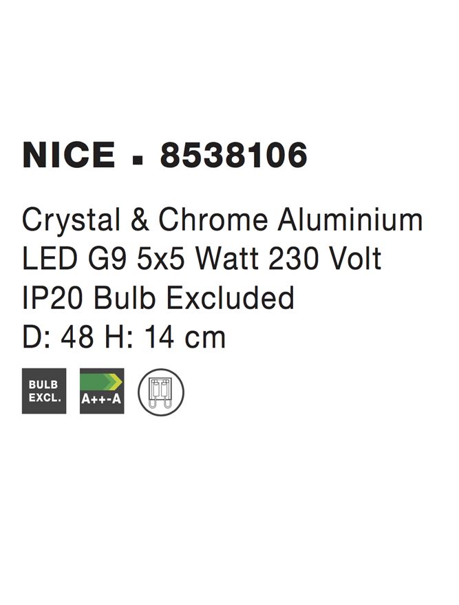 Clear Crystal & Chrome Aluminium LED G9 5×5 Watt 230 Volt IP20 Bulb Excluded D: 48 H: 14 cm