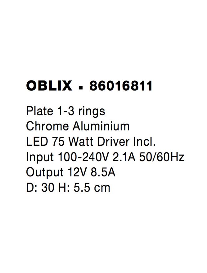 Plate 1-3 rings Chrome Aluminium LED 75 Watt Driver Incl. D: 30 H: 5.5 cm
