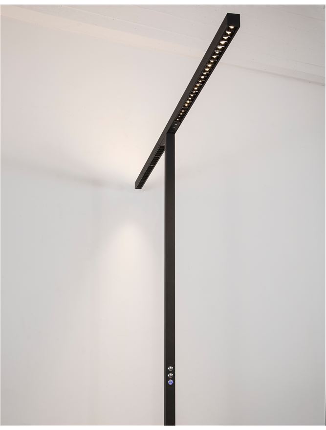 Срок на доставка: ПО ЗАПИТВАНЕ Продуктова информация Материал: Sandy Black Aluminium Тип крушка: LED Up 45 Watt 4050Lm Down 15 Watt 1350Lm Dimmable Downside 3000K 230 Volt IP20 CRI>90 UGR<16 Код: 9008815 Тип продукт: FLOOR – TABLE Размери: L: 160 W: 3.5 H: 200 cm