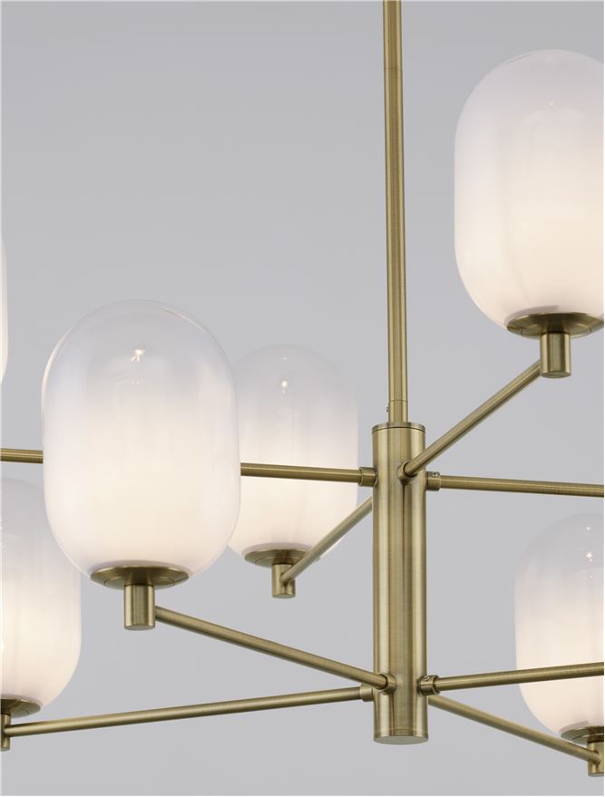 Срок на доставка: ПО ЗАПИТВАНЕ Продуктова информация Материал: Brass Gold Metal Gradient White Glass Тип крушка: LED G9 8×5 Watt 230 Volt IP20 Bulb Excluded Код: 9009245 Тип продукт: MODERN PENDANT LUMINAIRES Размери: D:80 H:77 cm