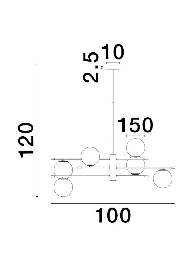 Matt Black & Sandy Gold Metal Opal Glass LED G9 6×5 Watt 230V IP20 Bulb Excluded L: 100 H: 120 cm