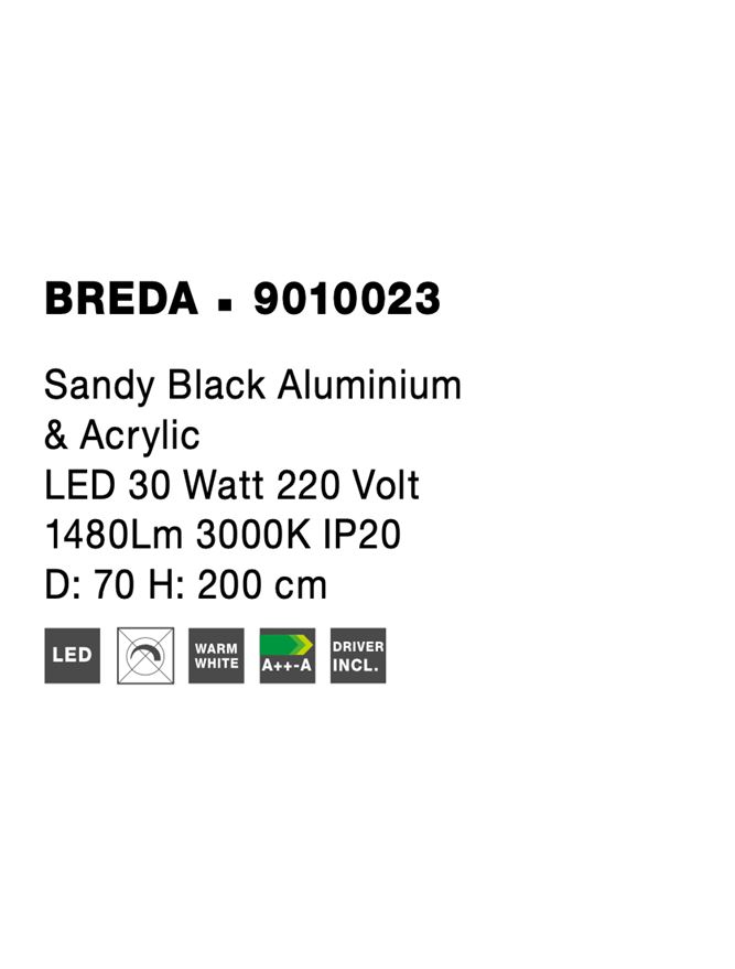 Sandy Black Aluminium & Acrylic LED 30 Watt 220 Volt 1480Lm 3000K IP20D: 70 H: 200 cm