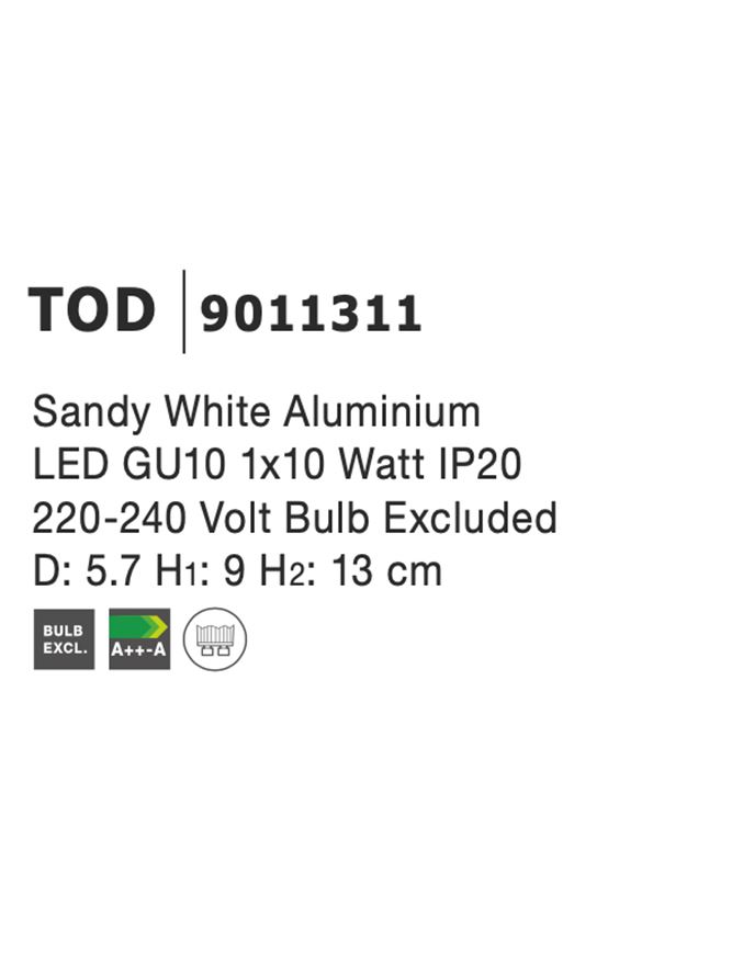 Sandy White Aluminium LED GU10 1×10 Watt IP20 220-240 Volt Bulb Excluded D: 5.7 H 1: 9 H 2: 13 cm