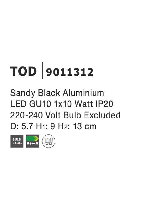 Sandy Black Aluminium LED GU10 1×10 Watt IP20 220-240 Volt Bulb Excluded D: 5.7 H 1: 9 H 2: 13 cm