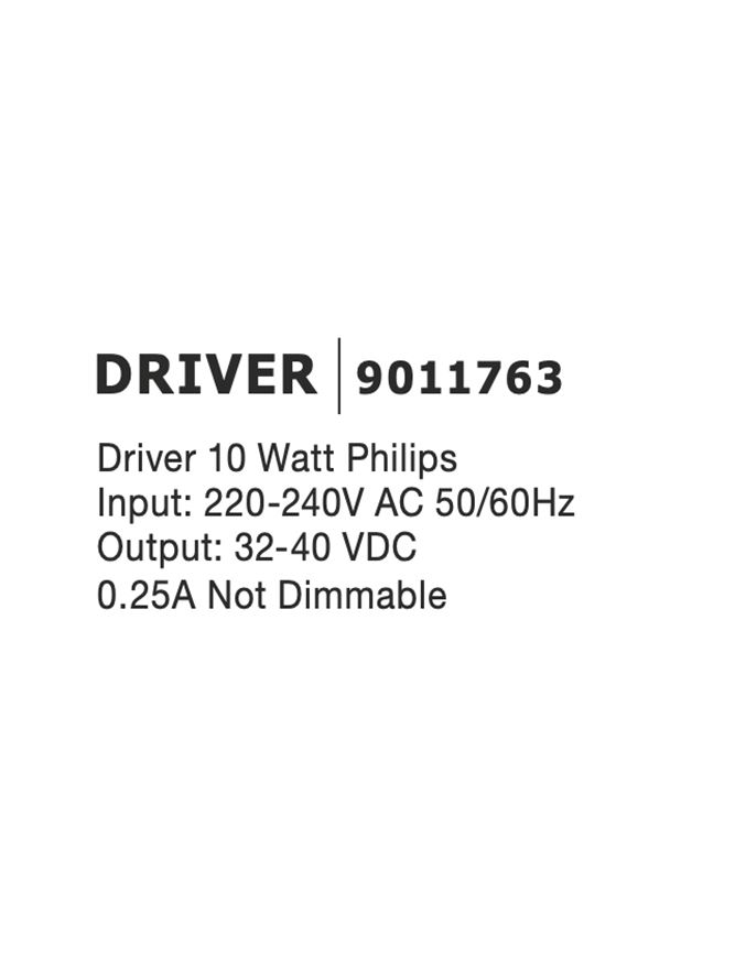 Driver 10 Watt Philips Input: 220-240V AC 50/60Hz Output: 32-40VDC 0.25A Not Dimmable