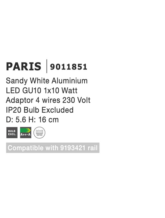 Sandy White Aluminium LED GU10 1×10 Watt Adaptor 4 wires 230 Volt IP20 Bulb Excluded D: 5.6 H: 16 cm