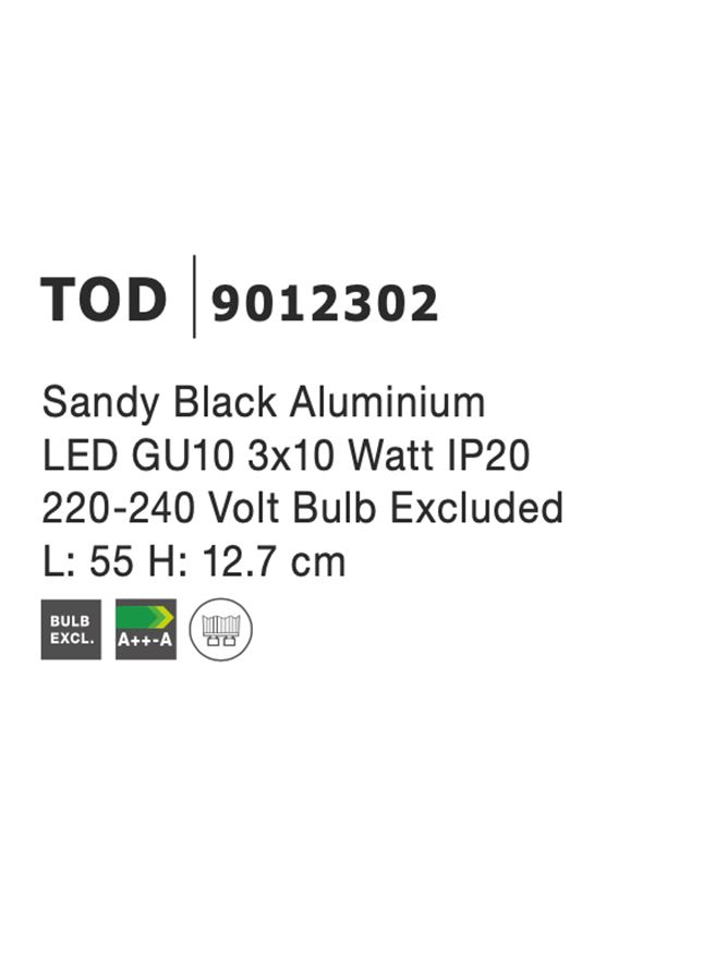 Sandy Black Aluminium LED GU10 3×10 Watt IP20 220-240 Volt Bulb Excluded D: 55 W: 6 H: 12.7 cm