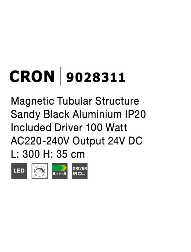 Magnetic Tubular Structure Sandy Black Aluminium IP20 Included Driver 100 Watt AC220-240V Output 24V DC L: 300 H: 35 cm