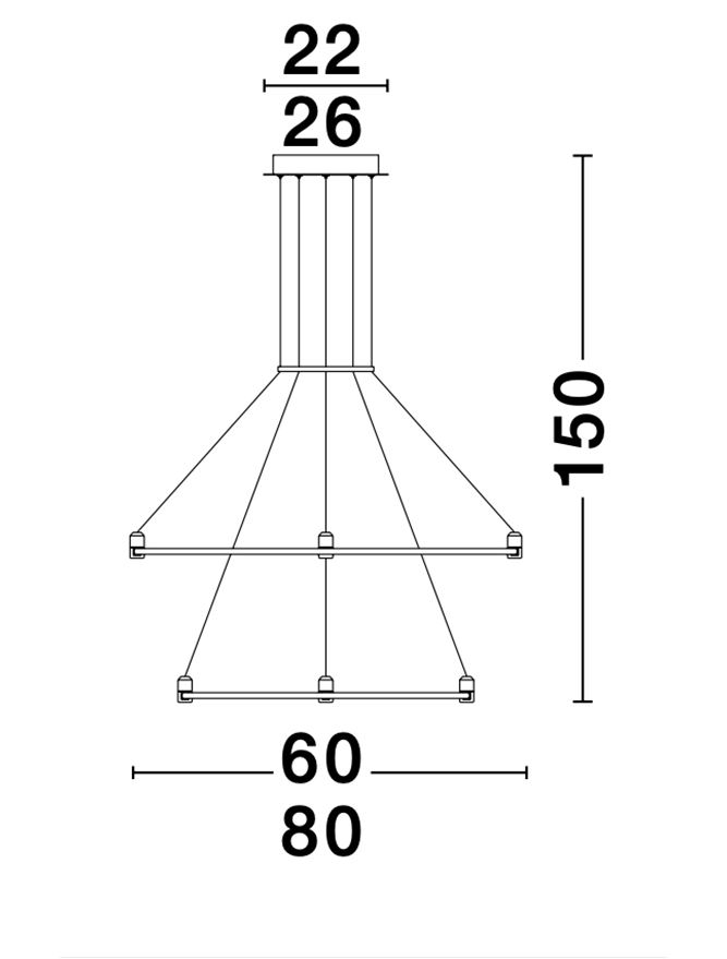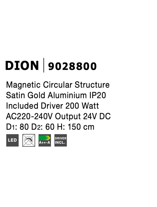 Magnetic Circular Structure Satin Gold Aluminium IP20 Included Driver 200 Watt AC220-240V Output 24V DC D1: 80 D2: 60 H: 150 cm