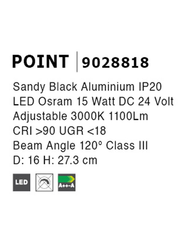 Sandy Black Aluminium 15W DC24V Osram D: 16 H: 27.3 1100Lm 3000K IP20