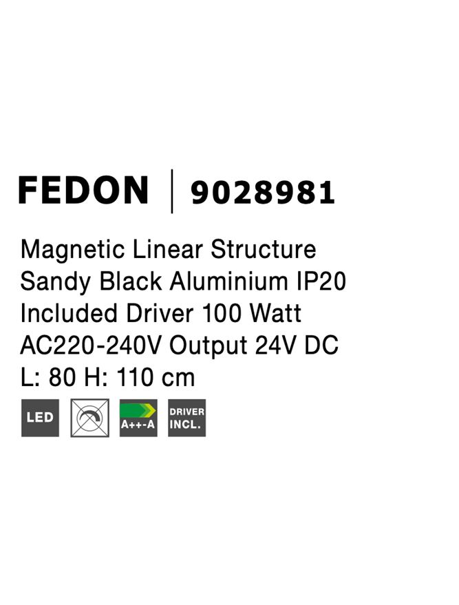Magnetic Linear Structure Satin Black Aluminium IP20 Included Driver 100 Watt AC220-240V Output 24V DC L: 80 H: 110 cm