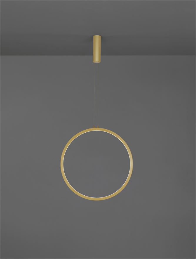 Срок на доставка: ПО ЗАПИТВАНЕ Продуктова информация Материал: Gold Aluminium & Acrylic Тип крушка: LED 35 Watt 230 Volt 1160Lm 3000K IP20 Код: 9070168 Тип продукт: MODERN PENDANT LUMINAIRES Размери: D: 60 H: 150 cm