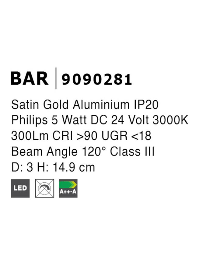 Срок на доставка: ПО ЗАПИТВАНЕ Продуктова информация Материал: Satin Brass Aluminium Тип крушка: LED 5 Watt DC24V 300Lm 3000K IP20 Код: 9090281 Тип продукт: MAGNETIC – DECORATIVE Размери: D:3 H:14.9 cm
