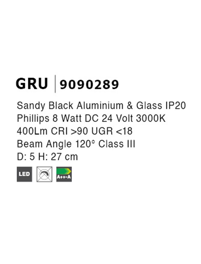 Sandy Black Alum+Glass 8W DC24V Philips D: 5 H: 27 400Lm 3000K IP20