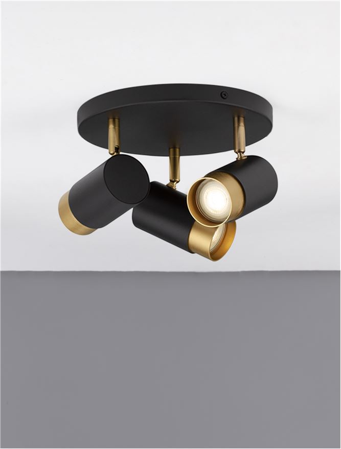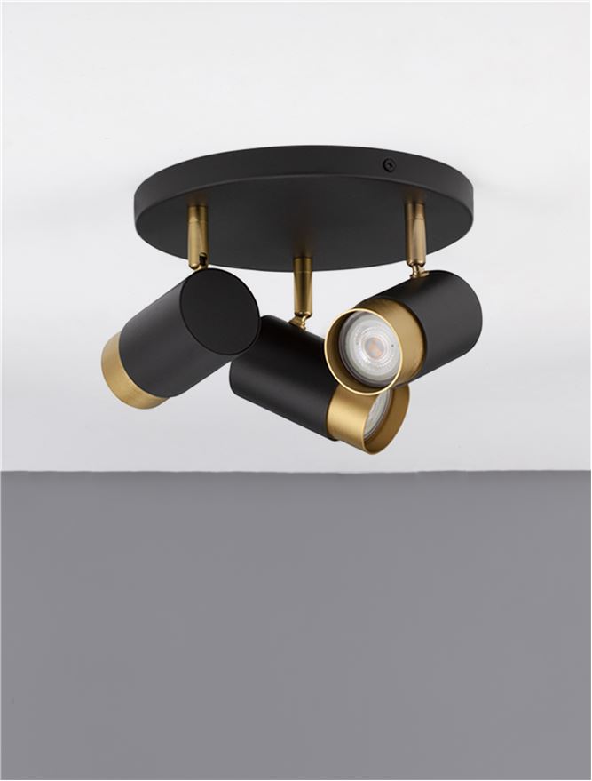 Sandy black & Gold Aluminium LED GU10 3×10 Watt IP20 220-240 Volt Bulb Excluded D: 22 H: 14 cm
