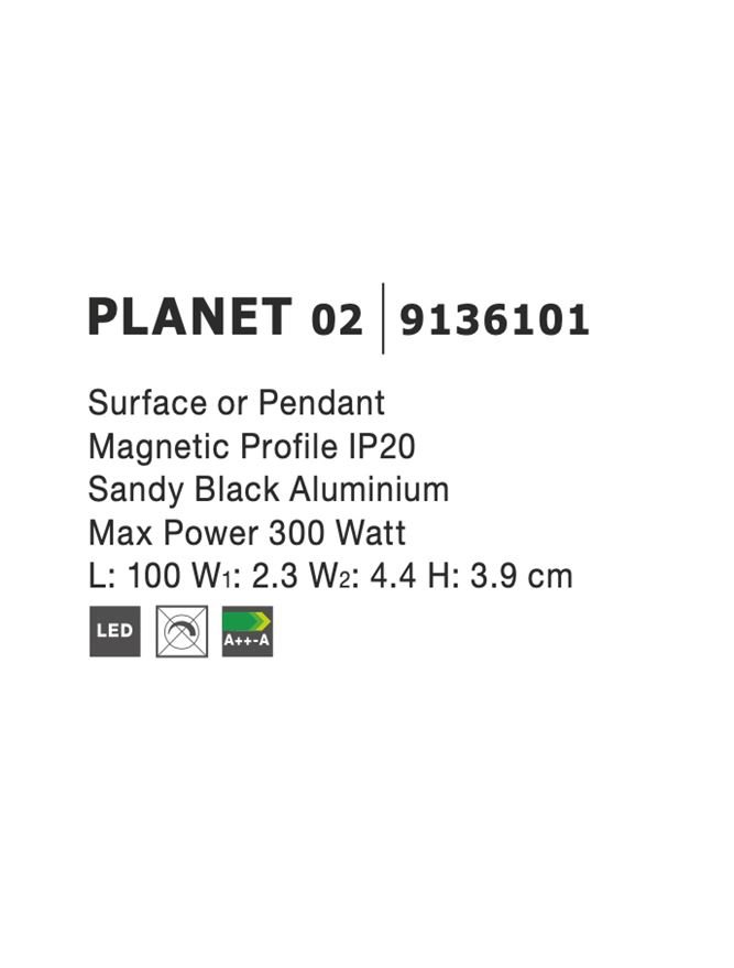 Срок на доставка: ПО ЗАПИТВАНЕ Продуктова информация Материал: Surface or Pendant Magnetic Profile Sandy Black Aluminium Тип крушка: IP20 Max Power 300 Watt Код: 9136101 Тип продукт: MAGNETIC PROFILE Размери: L: 100 W1: 2.3 W2: 4.4 H: 3.9 cm