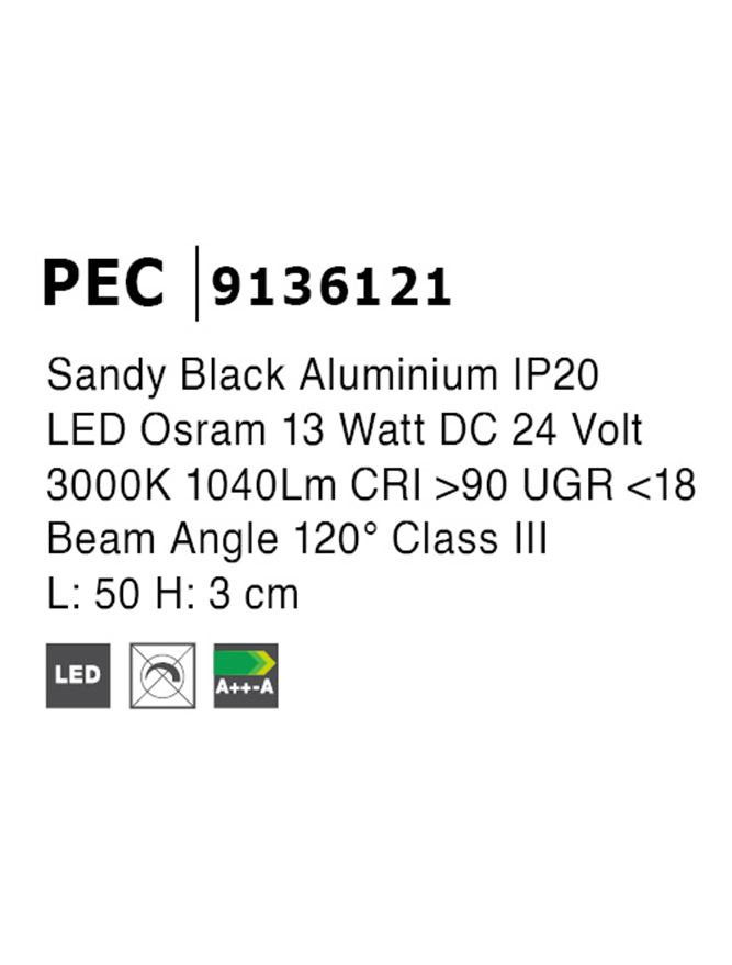 Sandy Black Aluminium 13W DC24V Osram L: 50 H: 3 1040Lm 3000K IP20