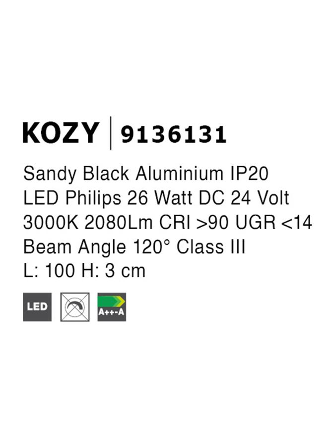 Sandy Black Aluminium 26W DC24V Philips L: 100 H: 3 2080Lm 3000K IP20