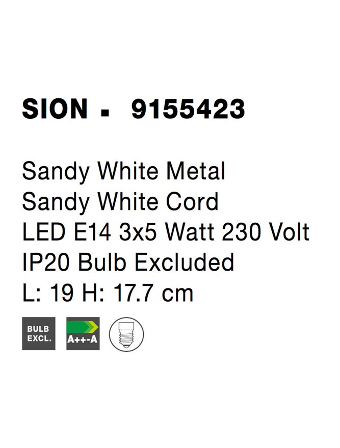 Sandy White Metal Sandy White Cord LED E14 3×5 Watt 230 Volt IP20 Bulb Excluded L: 19 H: 17.7 cm