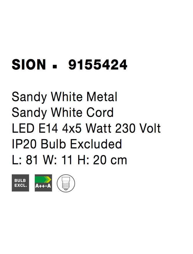 Sandy White Metal Sandy White Cord LED E14 4×5 Watt 230 Volt IP20 Bulb Excluded L: 81 W: 11 H: 20 cm