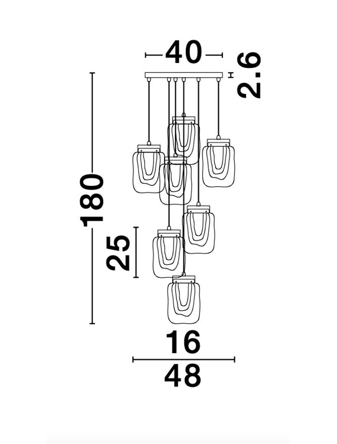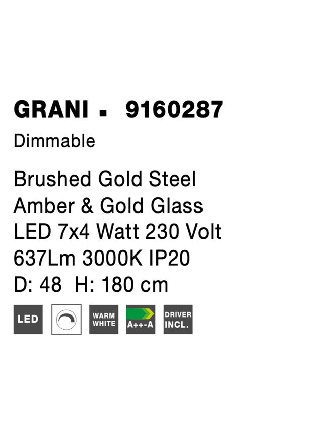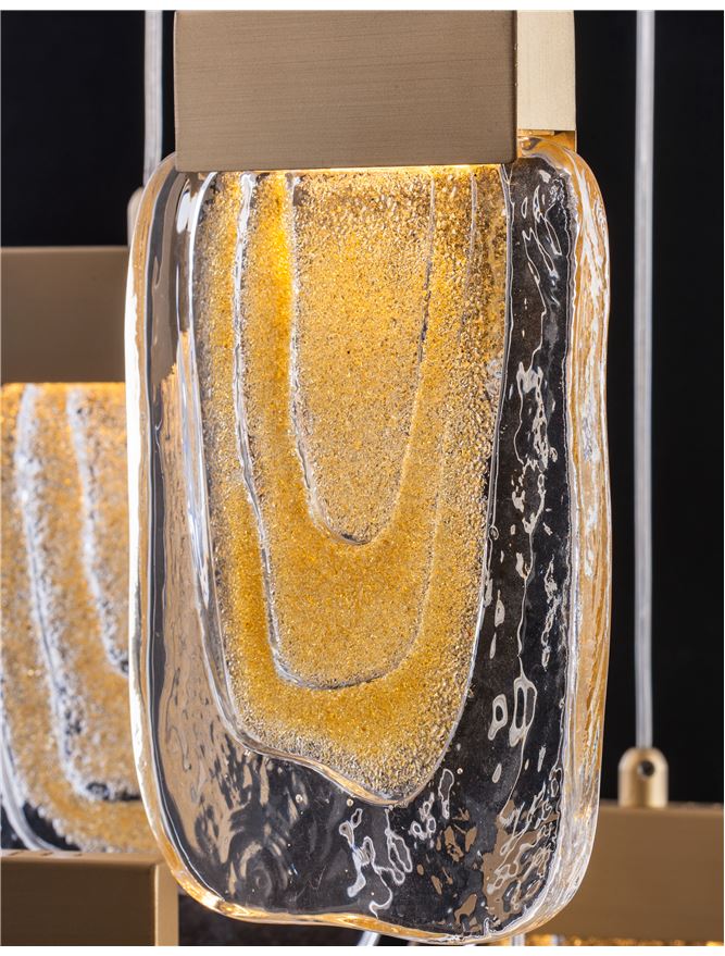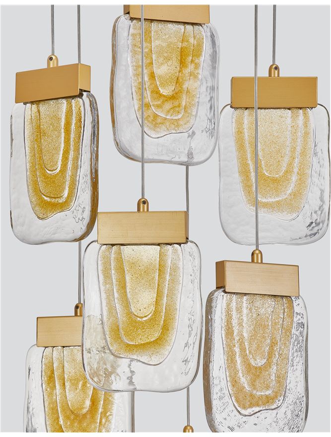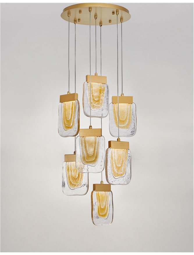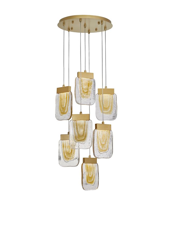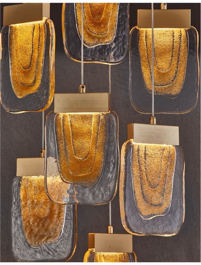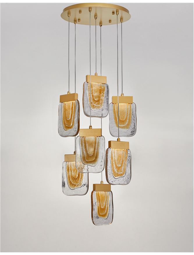 Brushed Gold Steel Amber & Gold Glass LED 7×4 Watt 230 Volt 637Lm 3000K IP20 D: 48 H: 180 cm