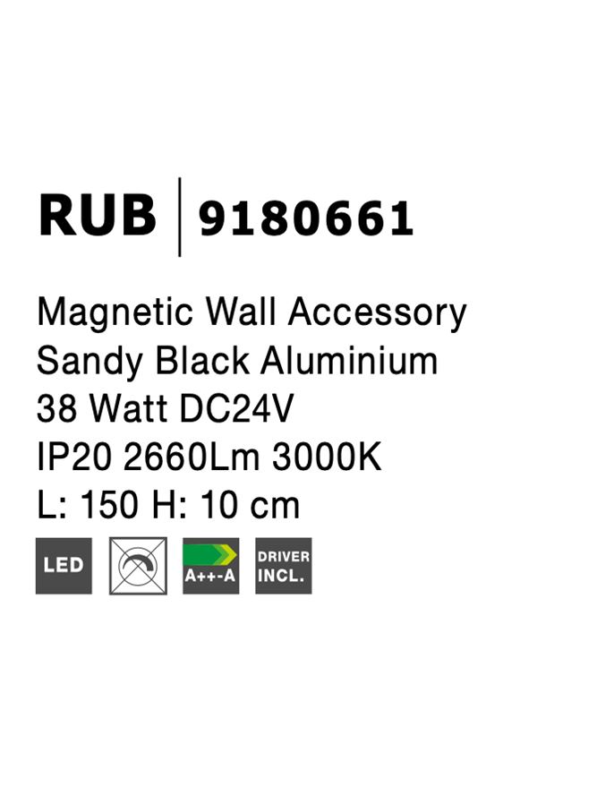 Magnetic Wall Accessory Sandy Black Aluminium 38 Watt 24V DC IP20 2660Lm 3000K CRI>90 UGR