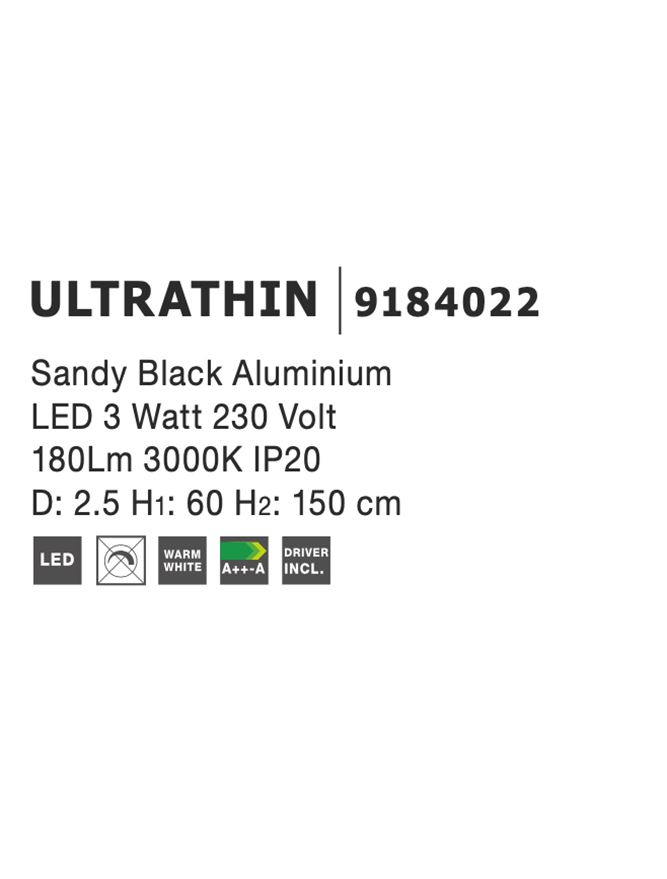 Sandy Black Aluminium= LED 3 Watt 230 Volt 180Lm 3000K IP20 D: 2.5 H1: 60 H2: 150 cm