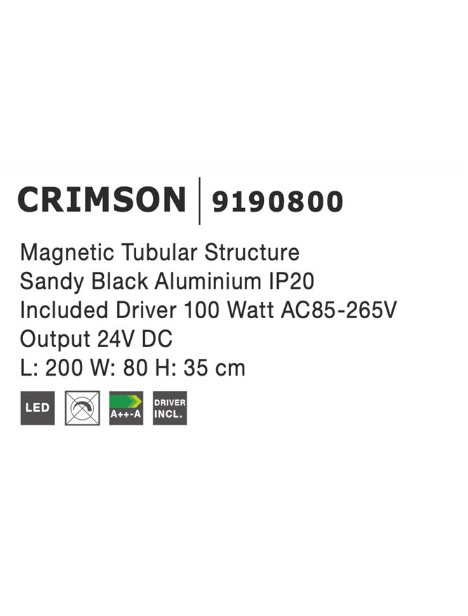 Срок на доставка: ПО ЗАПИТВАНЕ Продуктова информация Материал: Magnetic Tubular Structure Sandy Black Aluminium Тип крушка: IP20 Included Driver 100 Watt AC85-265V Output 24V DC Код: 9190800 Тип продукт: MAGNETIC – DECORATIVE Размери: L: 200 W: 80 H: 35 cm