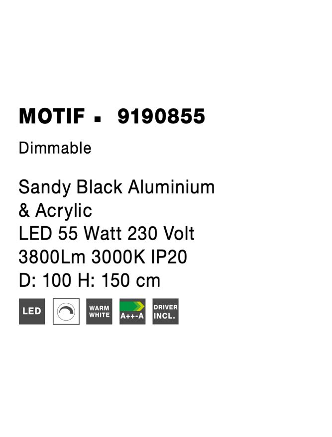 Sandy Black Aluminium & Acrylic LED 55 Watt 230 Volt 3800Lm 3000K IP20 D: 100 H: 150 cm