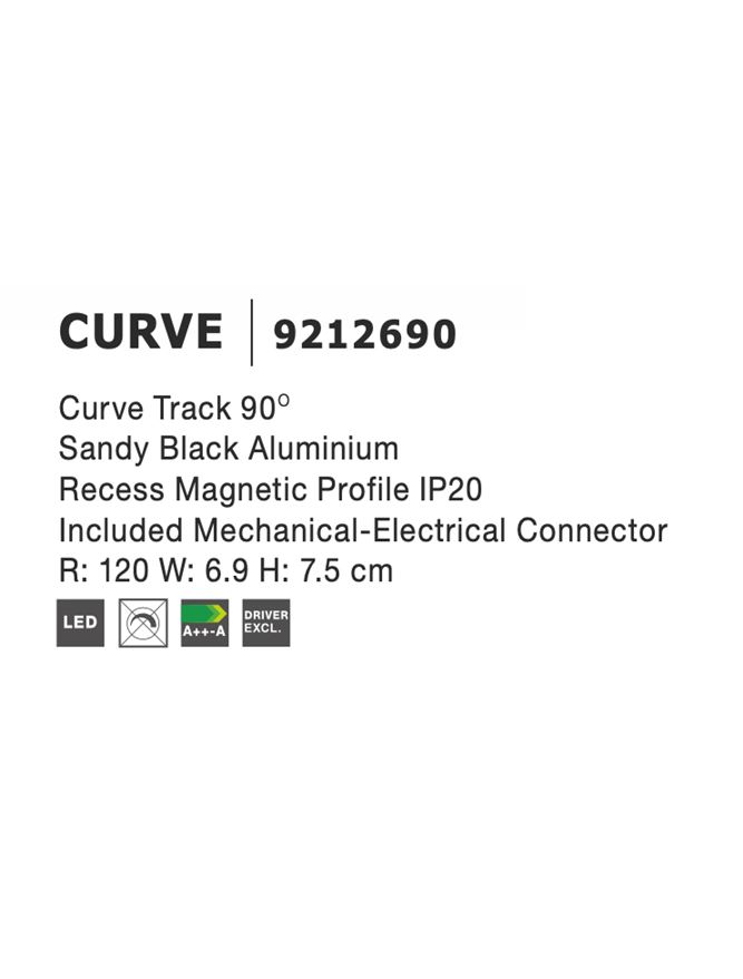 Срок на доставка: ПО ЗАПИТВАНЕ Продуктова информация Материал: Sandy Black Aluminium Тип крушка: Curve Track 90 Recess Magnetic Profile IP20 Included Mechanical-Electrical Connector Код: 9212690 Тип продукт: MAGNETIC – DECORATIVE Размери: R: 120 W: 6.9 H: 7.5 cm
