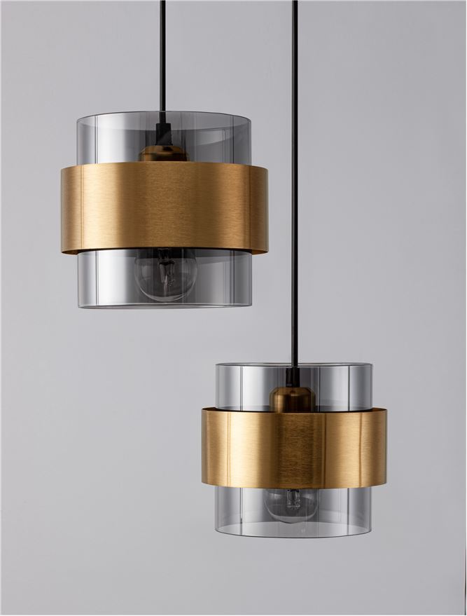 Smoke Glass Brass Gold Metal LED E27 3×12 Watt 230 Volt IP20 Bulb Excluded D: 45 H: 170 cm